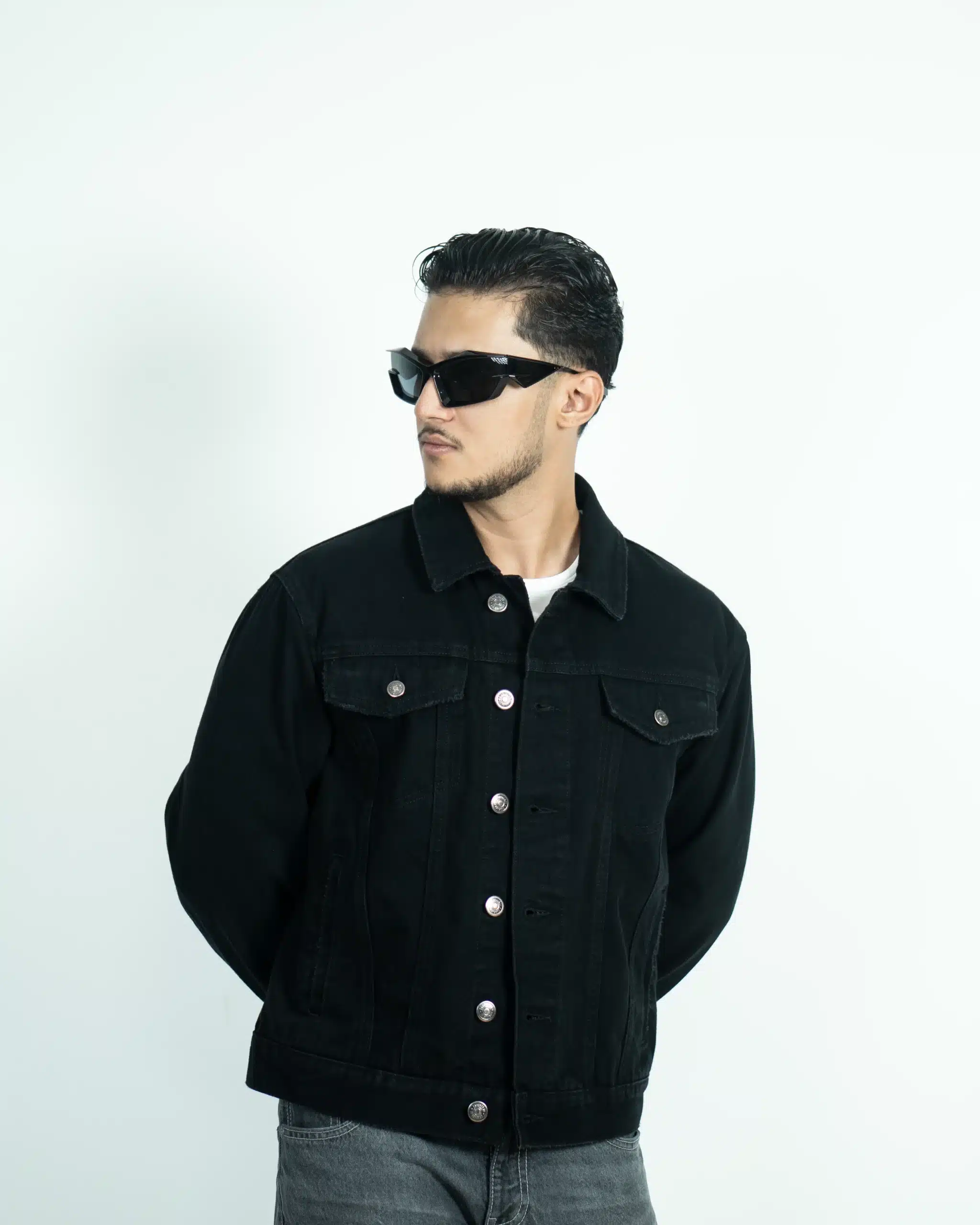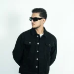 A classic denim black jacket style holds a strong place in fashion for its versatility, timeless appeal, and effortless cool factor. This denim fitted in the shoulders, snug in the body, hits at the hips.