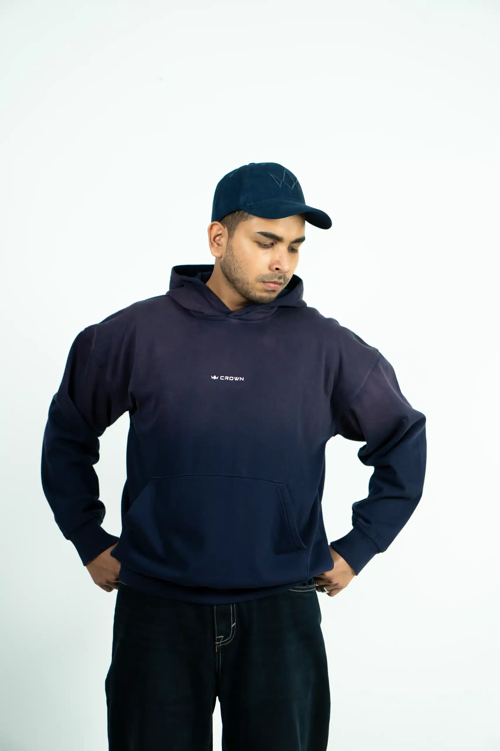 DROP SHOULDER SPRAY WASH HOODIE – NAVY