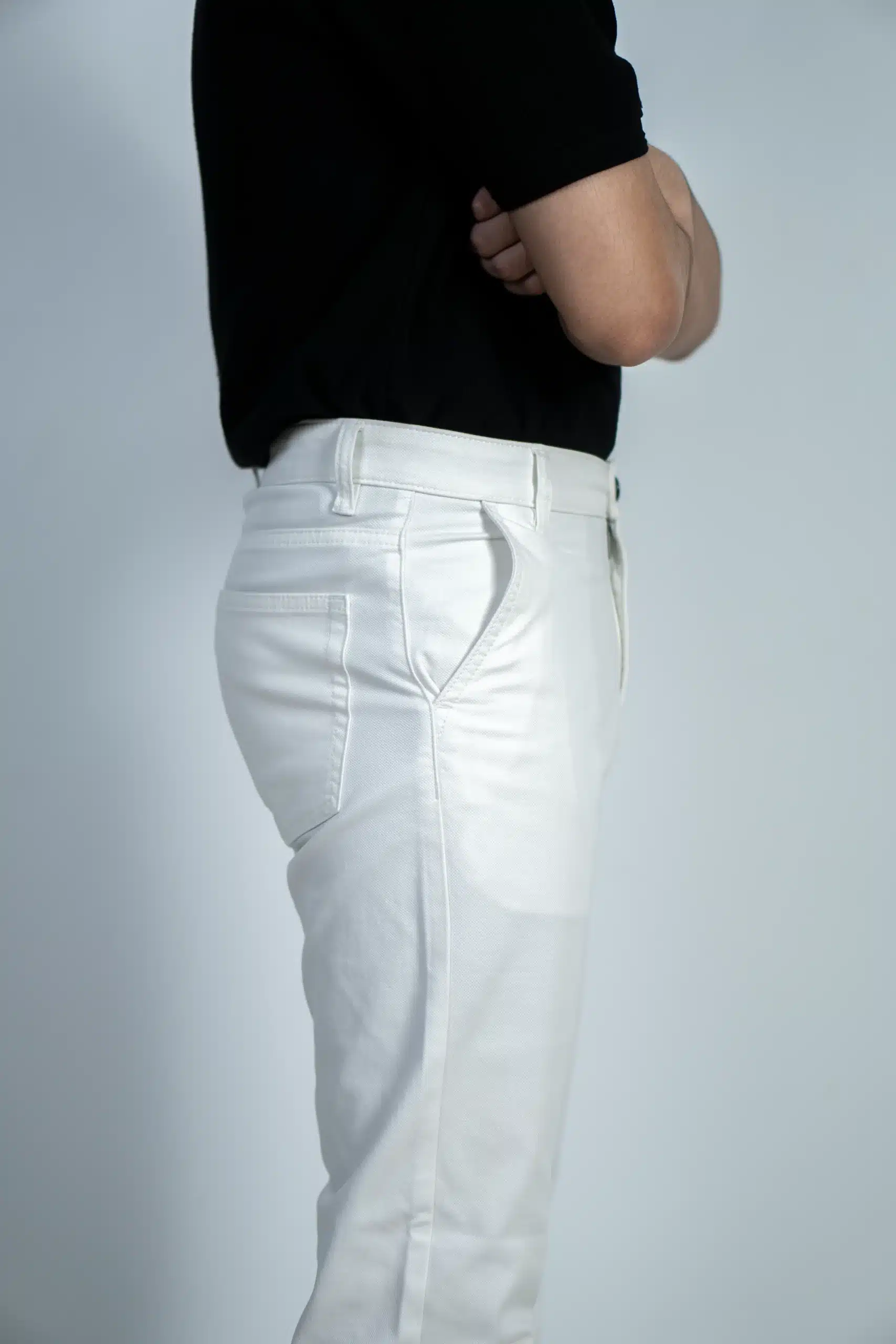 Chino regular fit garments in a washed white color blend comfort, casual elegance, and modern streetwear trends.